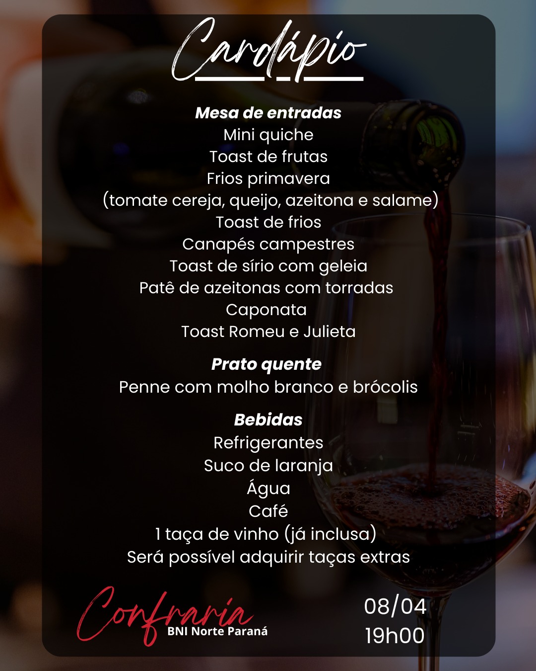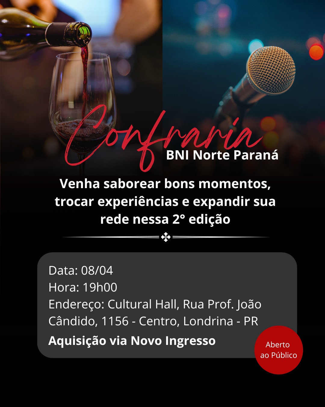 No dia 08/04, às 19h, te esperamos para a Confraria do BNI Norte Paraná!
